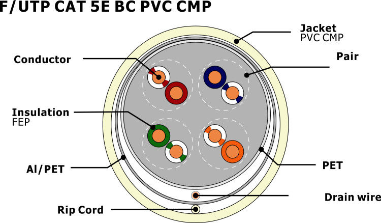 F/UTP CAT 5e BC CMP Massiv 0,50 mm Kupferleiter Indoor Cat5e Netzwerkkabel UL/ETL-zertifiziert NR. 7112115